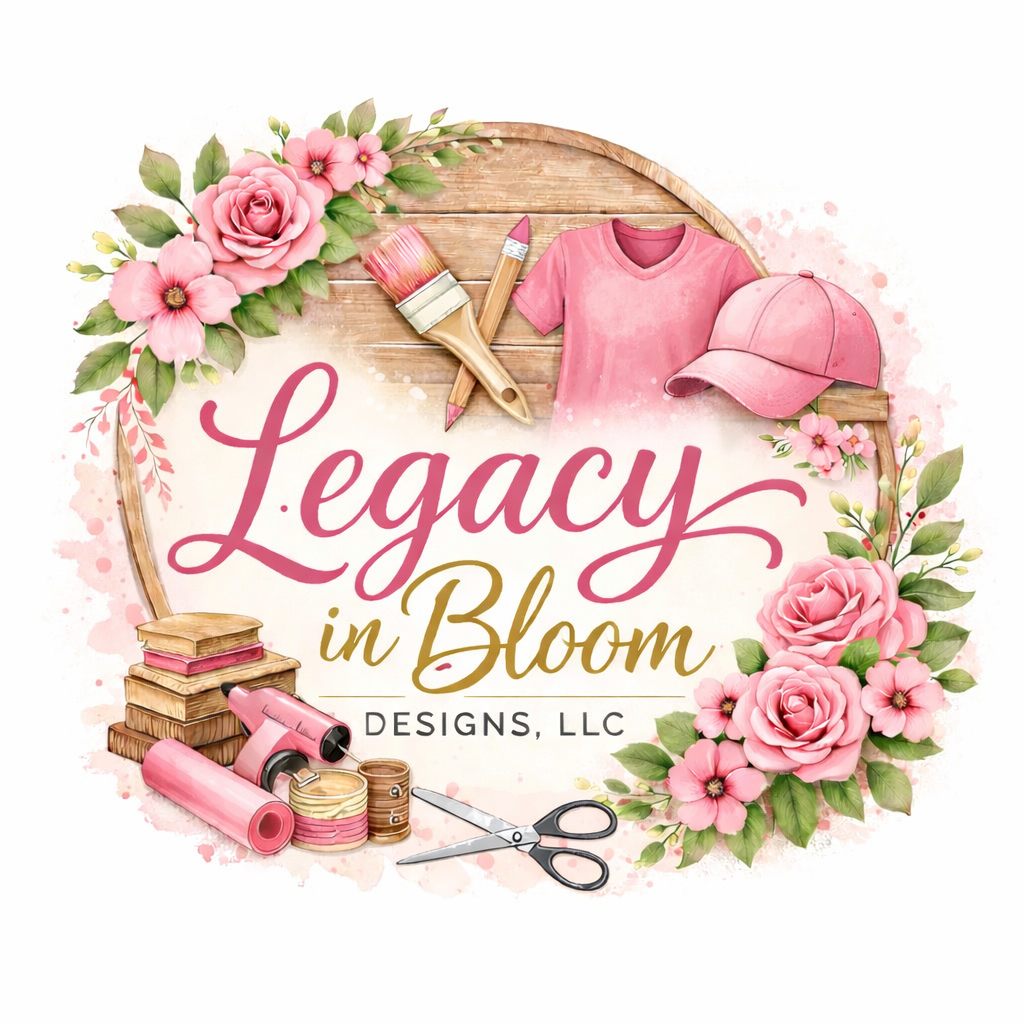Welcome to Legacy In Bloom Designs, where we specialize in creating exceptional custom apparel featuring high-quality DTF (Direct-to-Film) designs and classic embroidery. Each piece is meticulously crafted with premium materials and attention to detail, ensuring your custom apparel reflects the quality and artistry you deserve. Whether you're looking for vibrant, detailed designs or timeless embroidered elegance, we're dedicated to bringing your vision to life with uncompromising craftsmanship. Thank you for choosing Legacy In Bloom—where quality meets creativity in every stitch and print.